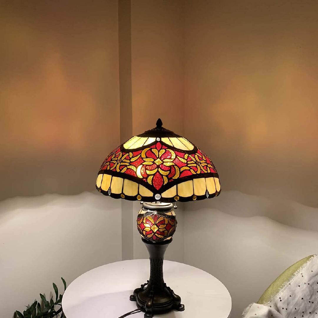 L10802 Baroque Tiffany Style Stained Glass Table Lamp Lighted Base 25 Inches Tall, Red