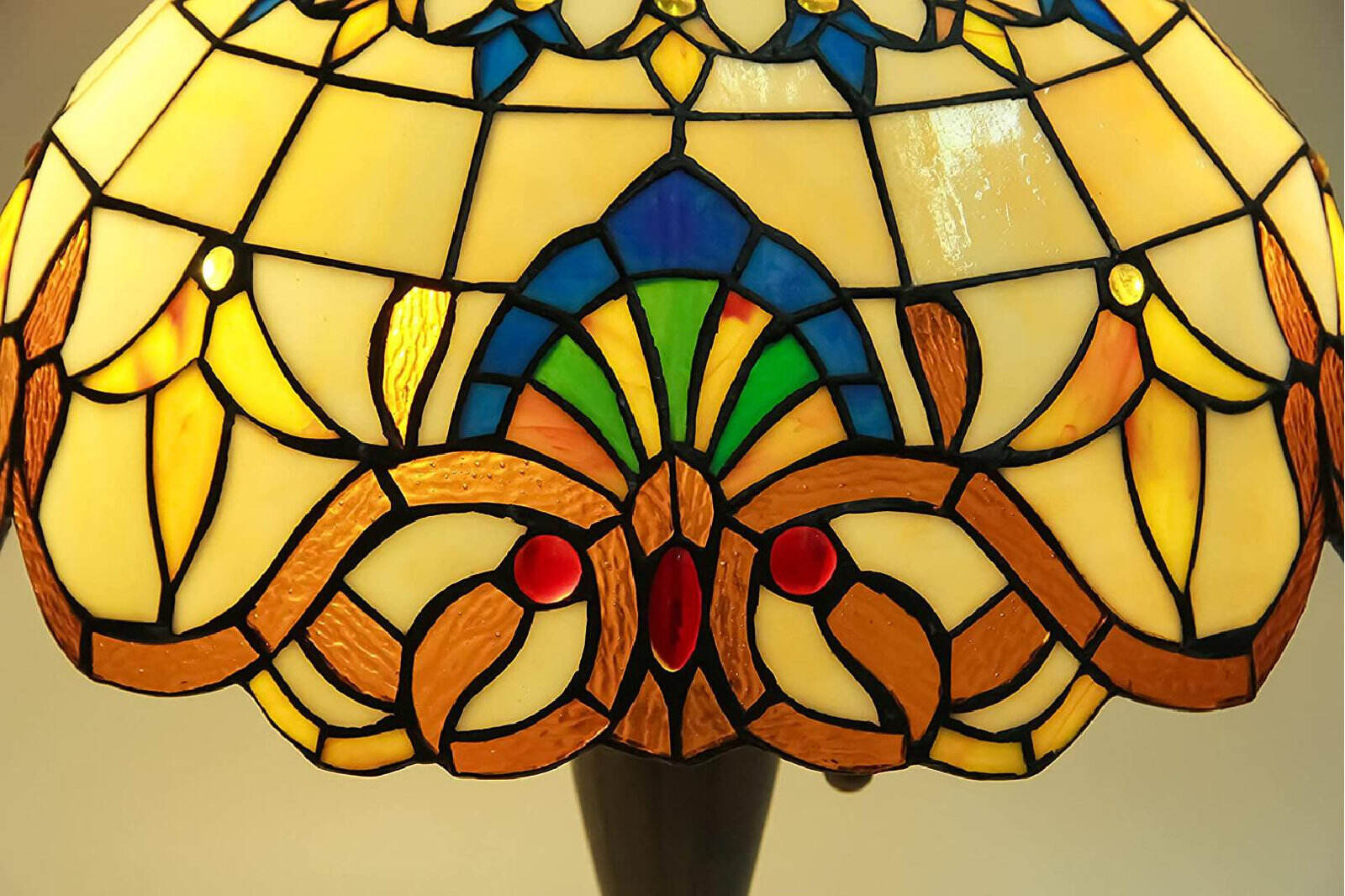 Lighting Tiffany Style Table Lamp W16h25inch Hand-Cut Baroque Stained Glass Antique Night Light For Living Room Bedroom Study Bar Antique Art Craft Gift