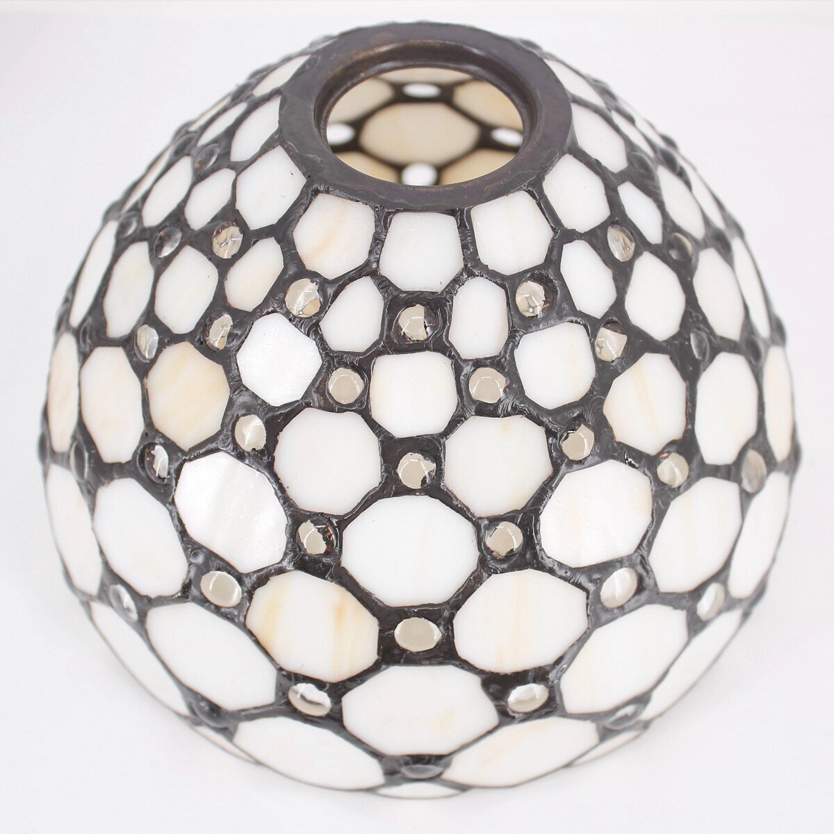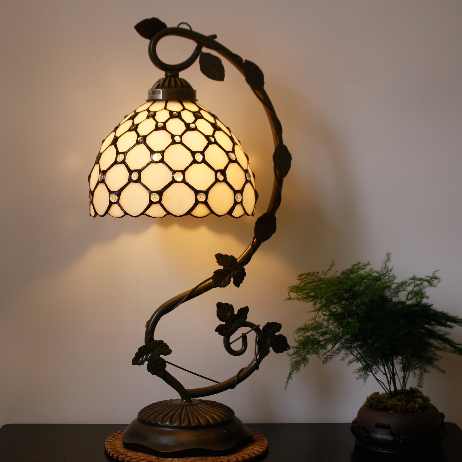 Bankers Lamp W8H22 Inch Cream Stained Glass Table Desk Reading Light Crystal Pearl Bead Style Shade S005 World Menagerie LAMPS Living Room Bedroom Study Bookcase Coffee Bar Gifts