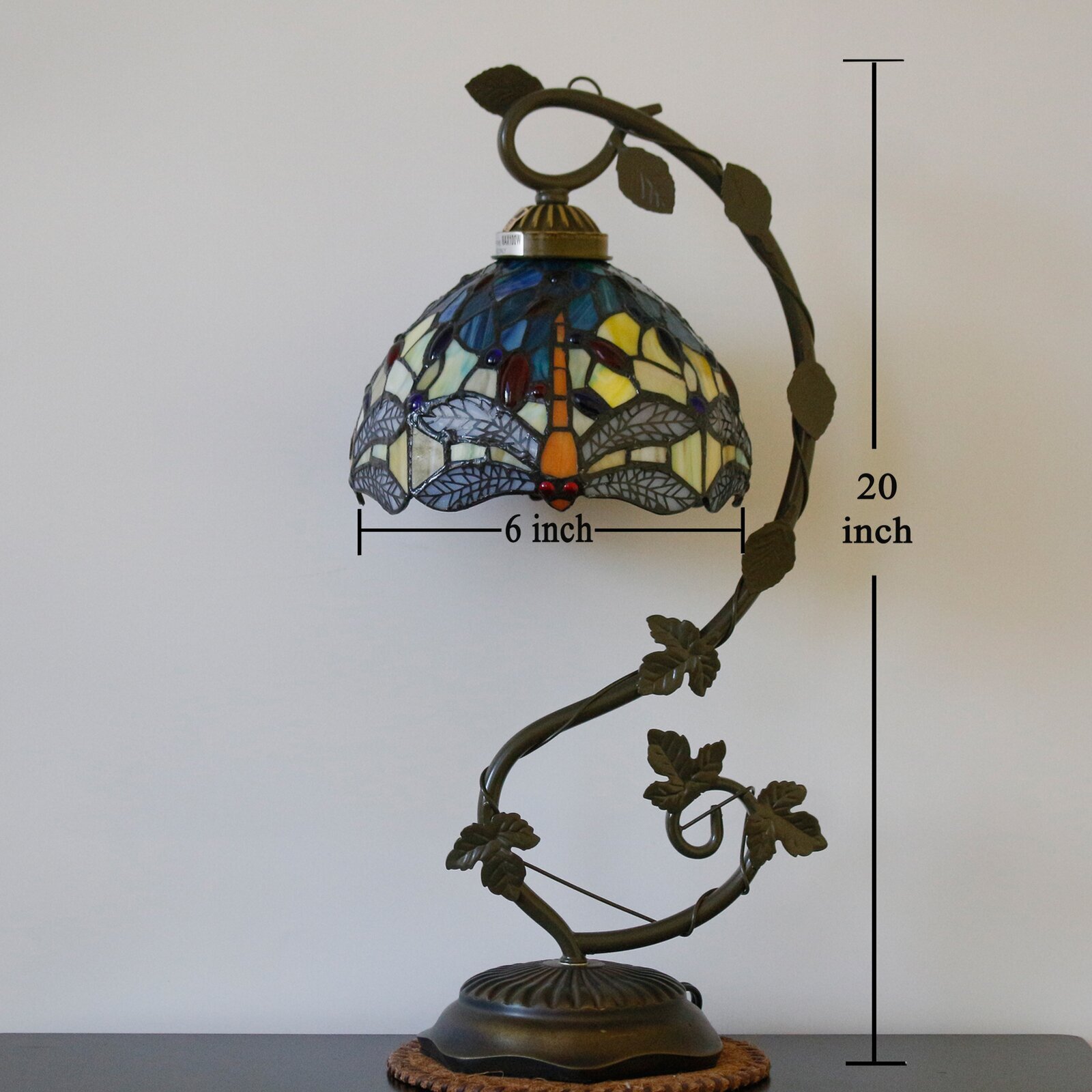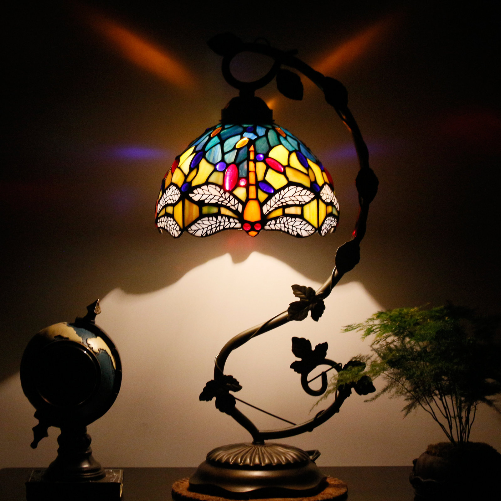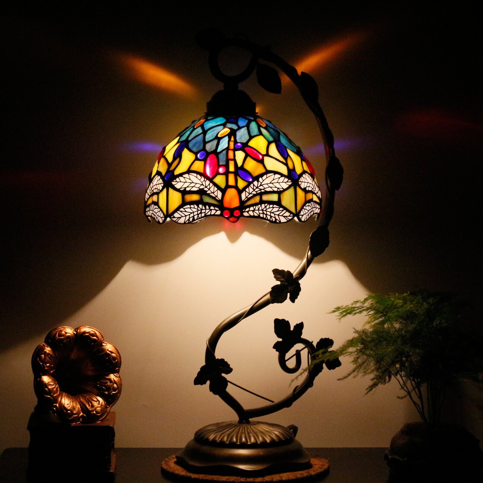 Desk Lamp Stained Glass Table Reading Banker Light Crystal Bead Blue Yellow Dragonfly Style Shade W8H20 Inch S128 World Menagerie LAMPS Parent Lover Kid Living Room Bedroom Coffee Bar Crafts Gift