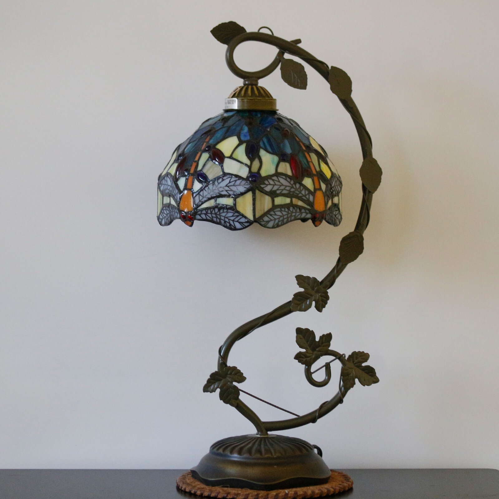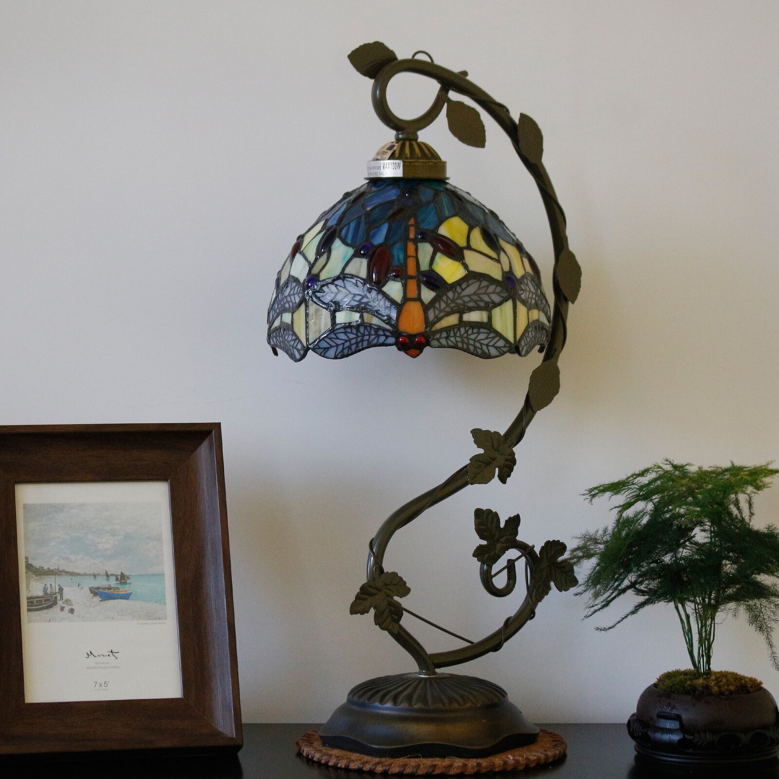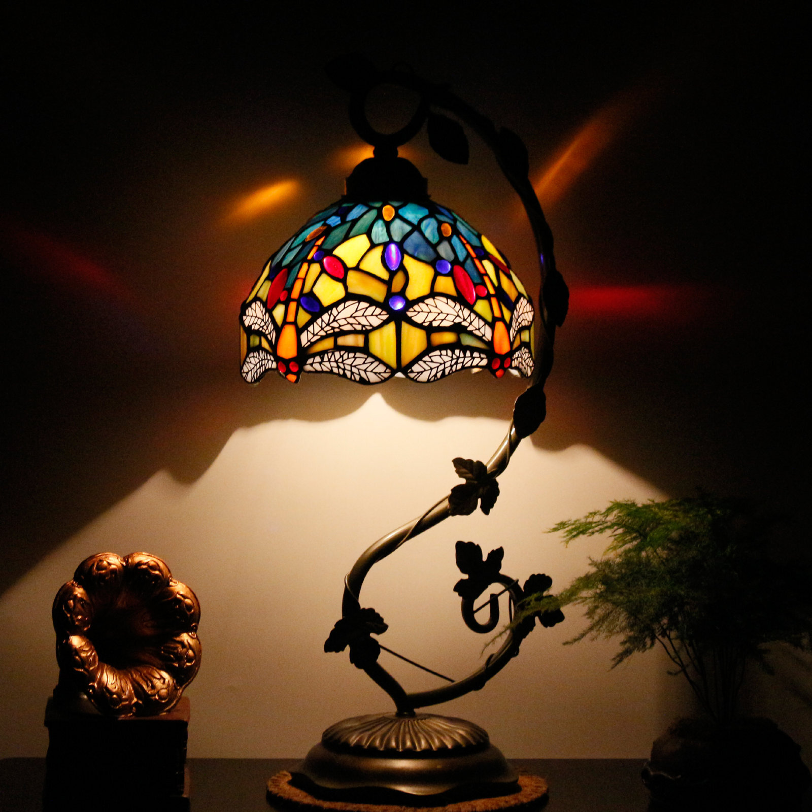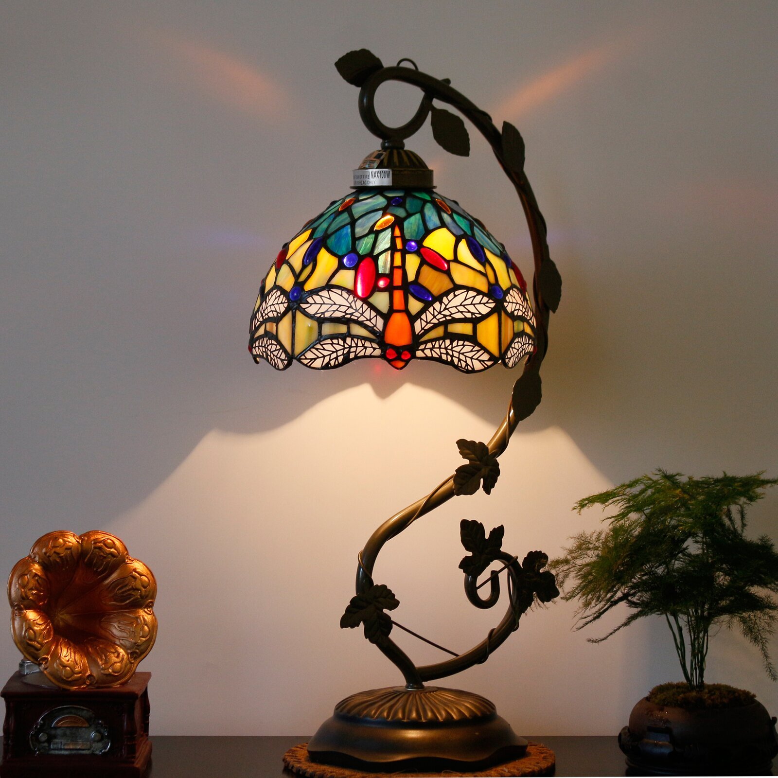 Desk Lamp Stained Glass Table Reading Banker Light Crystal Bead Blue Yellow Dragonfly Style Shade W8H20 Inch S128 World Menagerie LAMPS Parent Lover Kid Living Room Bedroom Coffee Bar Crafts Gift