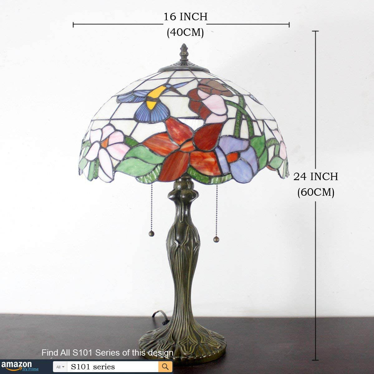 Tiffany Lamp Table Stained Glass Hummingbird Style Shade Metal Base 24"Tall Large Luxurious Bedside Desk Reading Light Friend Kid Living Room Bedroom Lover Memory Sympathy Country Farmhouse