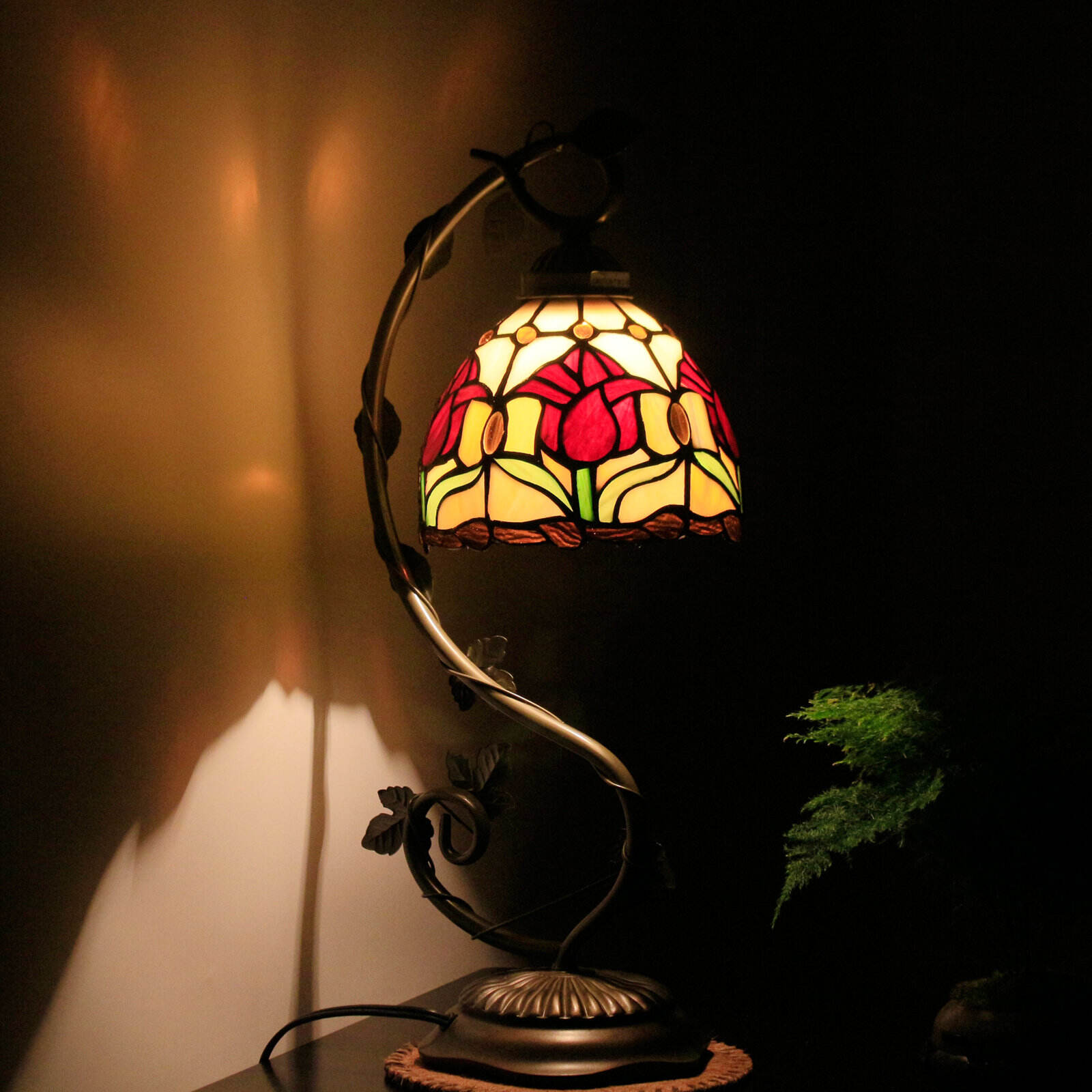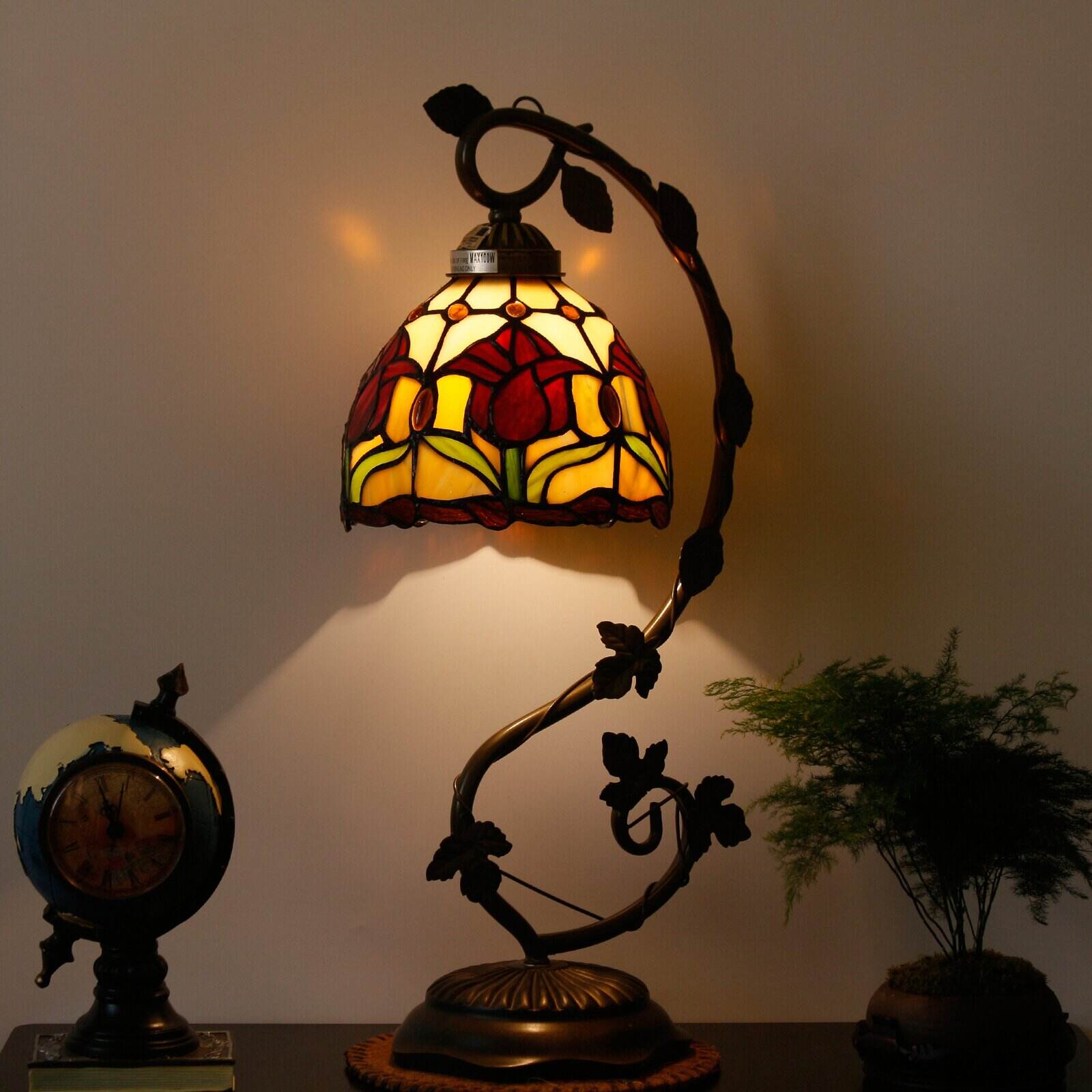 Tiffany Lamp Tulip Flower Stained Glass Style Table Reading Light W8H20 Inch (LED Bulb Included) S030 World Menagerie LAMPS Parent Lover Kid Friend Living Room Bedroom Coffee Bar Desk Bedside Antique Gifts