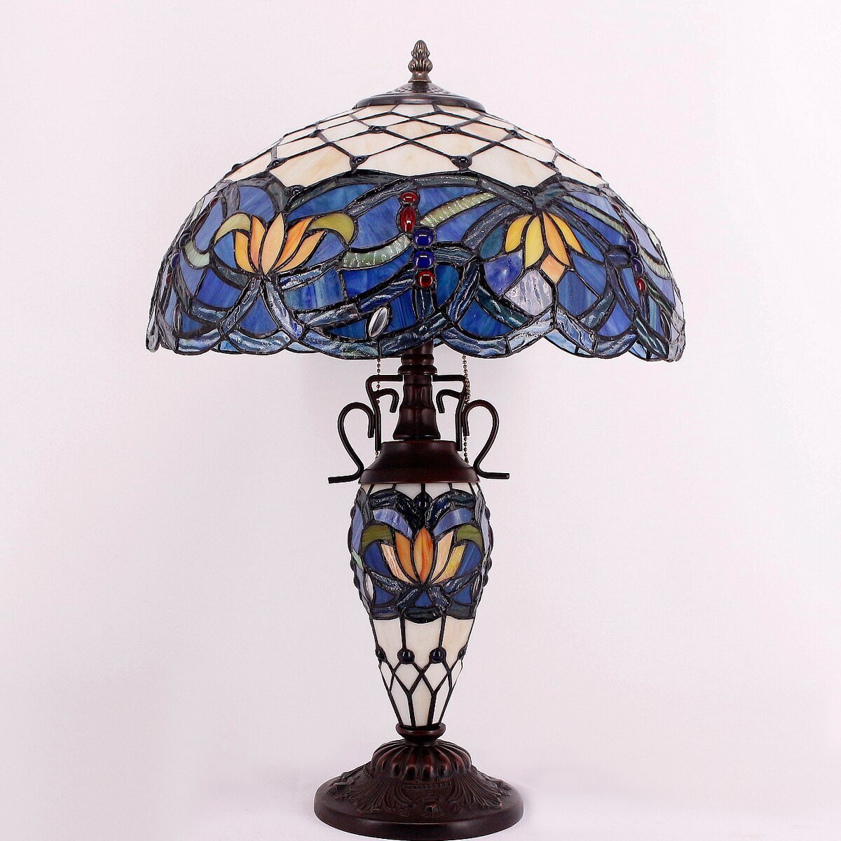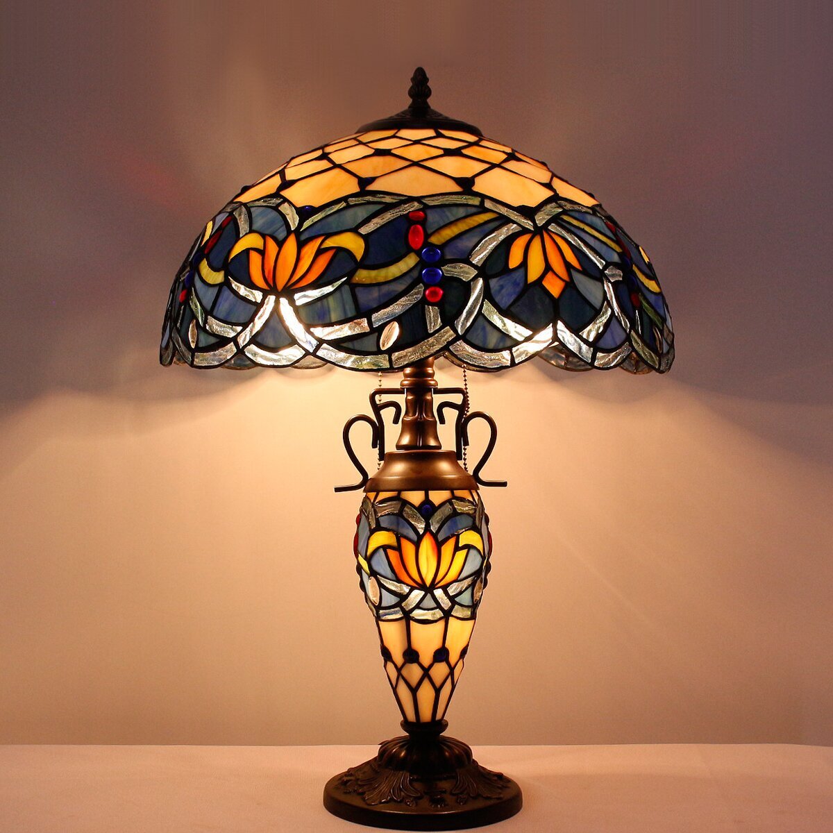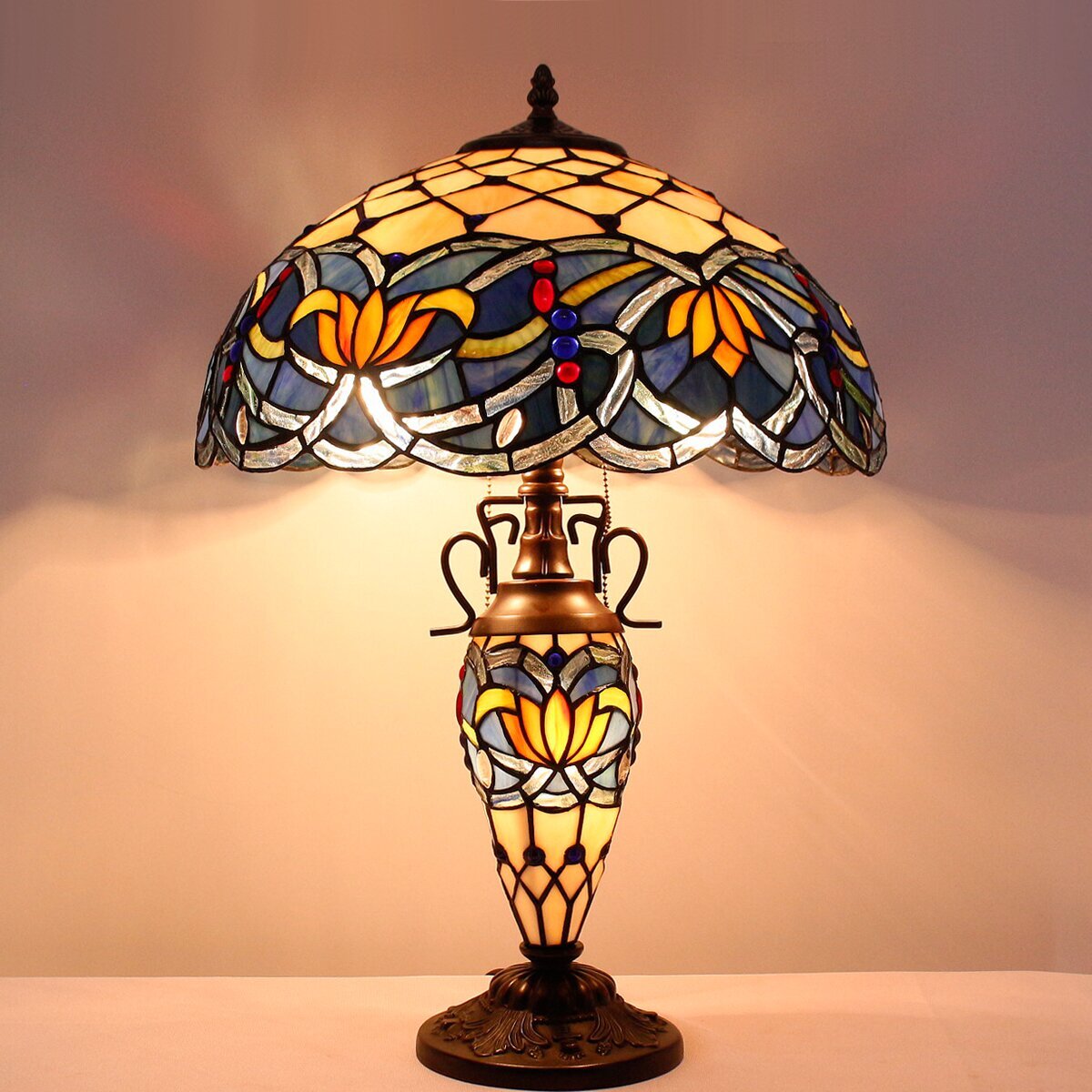 Lamp With Nightlight Rustic Large Blue Stained Glass Lotus Table Lamp Desk 24