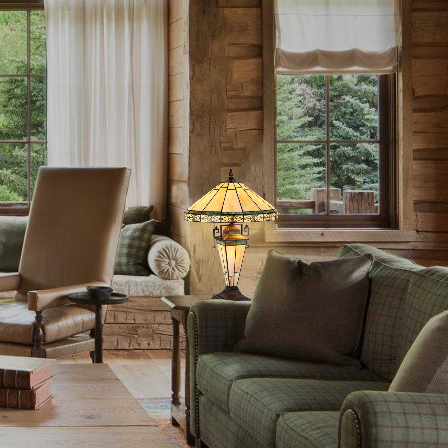 Large Table Lamp 3-Light With Nightlight Mission Rustic Style Desk Light Decor