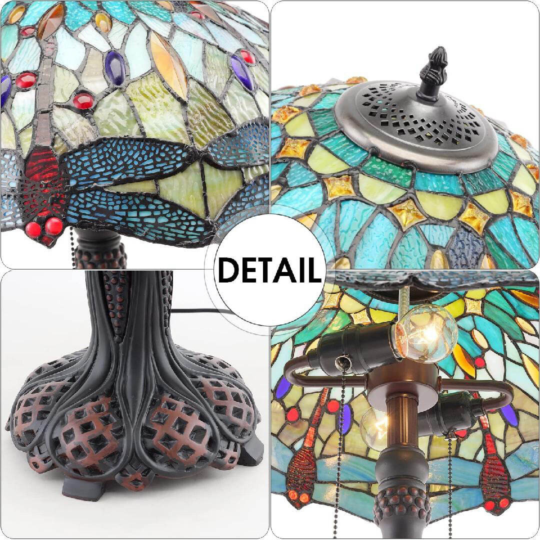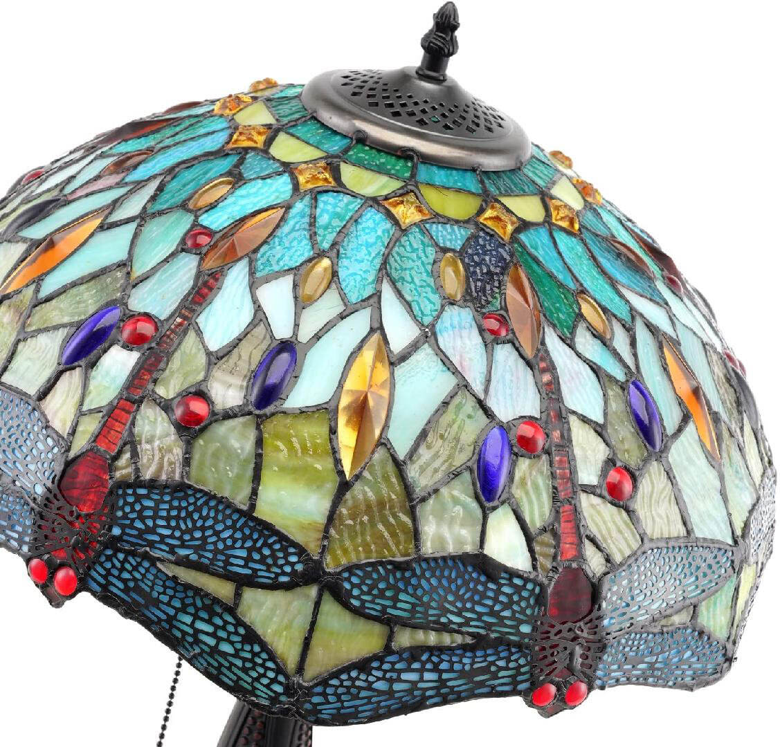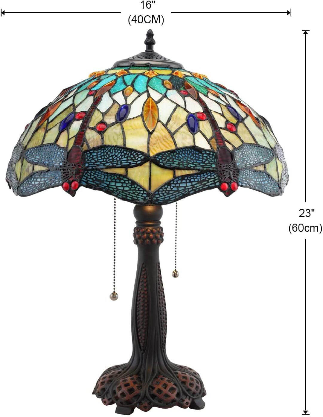 Tiffany Style Table Lamp, 23" Tall Vintage Base Rustic Large Tiffany Lamp Bedside, Large Luxurious Unique Desk Light Dragonfly Stained Shade, For Lover Bedroom Living Room Country Farmhouse