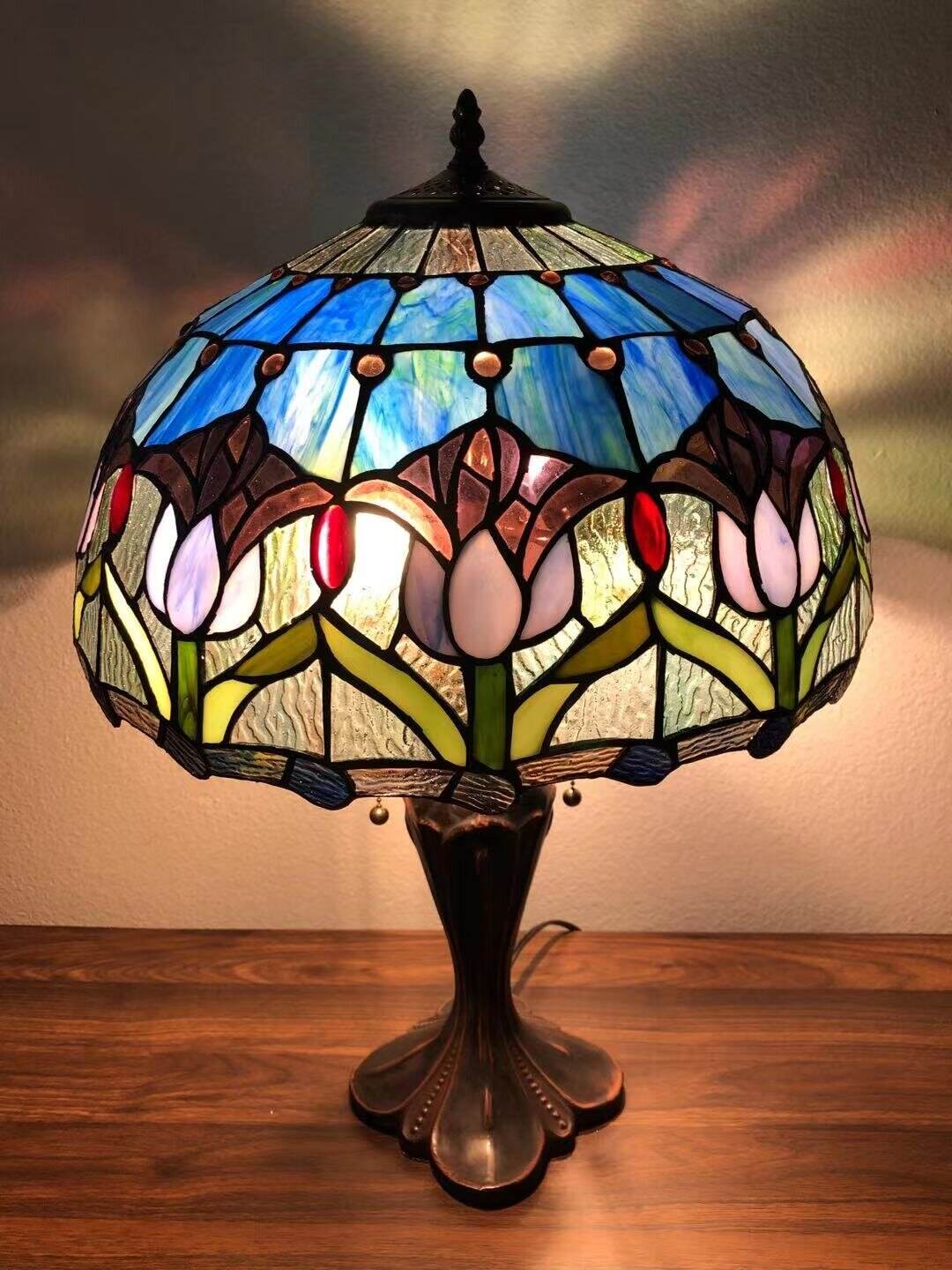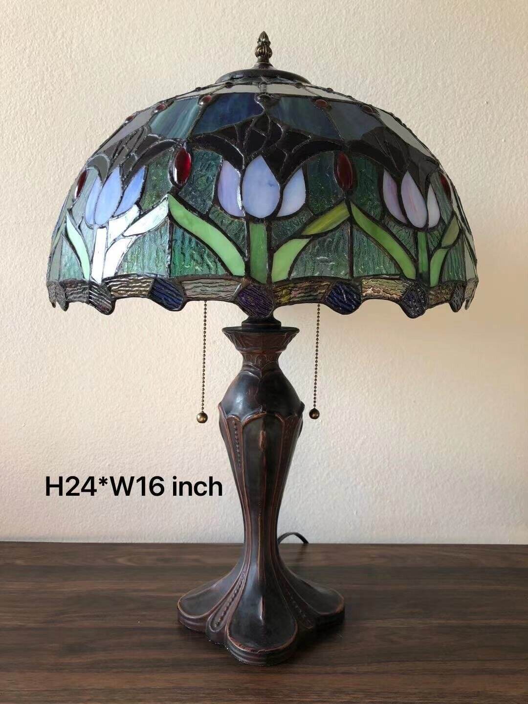 Tiffany Style Table Lamp Tulip Red H24*W16 Inch