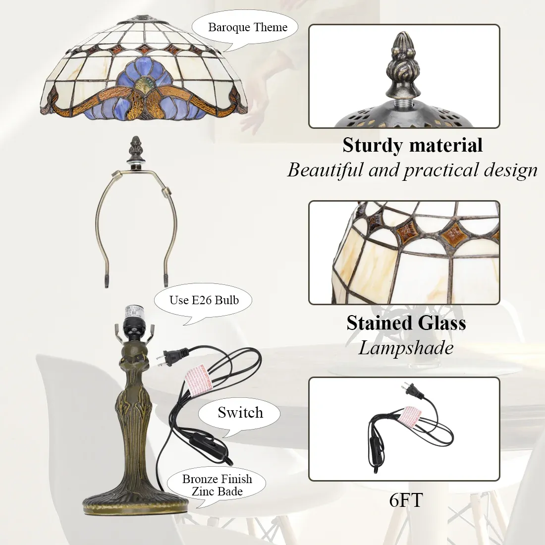 Tiffany Table Lamp - Handmade Antique Baroque Tiffany Desk Lamp For Living Room Bedroom Desk Coffee Bar Art Decoration (Bulb Not Included)