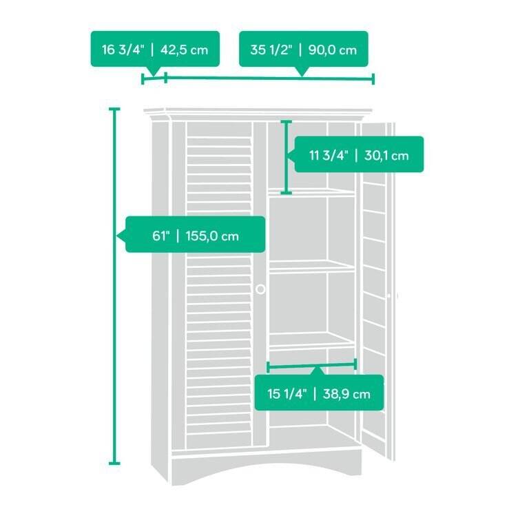 Bring a clean, beachy style to your bedroom with this two-door accent chest. Crafted of manufactured wood in a fashionable finish, this chest showcases simple moldings, smooth sides, and an arched apron base. Showcasing matching painted wooden knobs, two louvered doors open to reveal adjustable shelving – perfect for storing everything from seasonal clothing to folded bedding. Hide the clutter and chaos with this storage cabinet from the Harbor View® collection. Behind the louver doors is a spacious hidden storage area to hide anything from decorations to dinnerware, to linens. This two-door cabinet features four adjustable shelves for flexible storage options and to accommodate items of various sizes. A full upper shelf allows you to store books, bins, towels, and much more. Never worry about bedroom storage furniture that is drab—the details and finish of this wood storage cabinet set it apart from those boring storage solutions. Finished in Salt Oak® and detailed with solid wood knobs, this storage cabinet with doors will have your home looking in ship shape in no time. We hope you like what you see. Sauder designers travel the world and bring back the best and latest in style, finish, and color trends. This inspiring world travel is evident in the cutting-edge and innovative furniture solutions we offer to you! With this storage cabinet from the Harbor View® collection, you can add extra storage space to any room in your home. It's perfect for bedroom furniture, living room storage furniture, the utility room, or just about anywhere. Behind the two louvers, detailed doors are hidden storage for all of the mess and clutter you can think of. Four adjustable shelves allow for customizable storage options for a variety of items like blankets, books, board games, and more. This home storage cabinet features a full upper shelf so you can store clothes, towels, or holiday decorations. Finished in a beautiful Antiqued White® and detailed with solid wood knobs, this stylish 2-door storage cabinet will keep you organized with ease. We hope you like what you see. Sauder designers travel the world and bring back the best and latest in style, finish, and color trends. This inspiring world travel is evident in the cutting-edge and innovative furniture solutions we offer to you! Kick clutter to the curb and get organized with this storage cabinet from the Harbor View® collection. Behind its louver, detailed doors are hidden storage that contains four adjustable shelves for flexible storage options and to accommodate items of various sizes. This 2-door storage cabinet features a full upper shelf so you can store anything from clothes and shoes to blankets and food. Never worry about bedroom storage furniture that is drab—the details and finish of this wood storage cabinet set it apart from those boring storage solutions. This handsome storage cabinet with doors is the solution to all your storage woes. We hope you like what you see. Sauder designers travel the world and bring back the best and latest in style, finish, and color trends. This inspiring world travel is evident in the cutting-edge and innovative furniture solutions we offer to you!